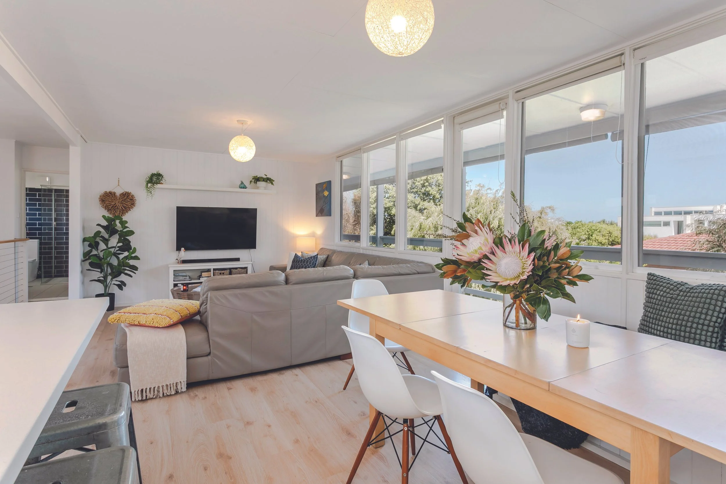 A C1975 home that radiates mid-century appeal, the layout is defined by an open plan upper floor living and kitchen with picture windows extending to a balcony made for sunset cocktails and breezy afternoons.
